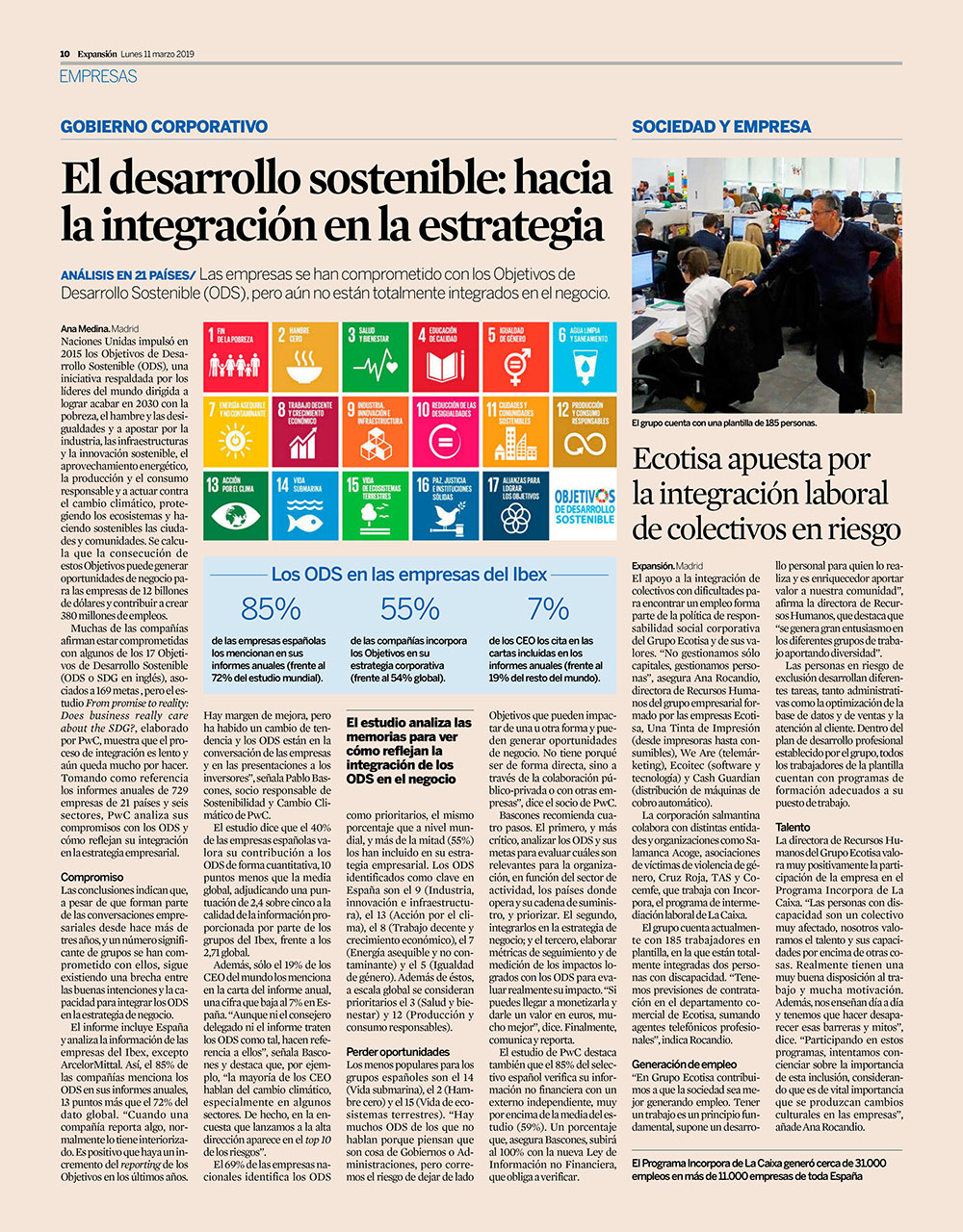 Las empresas se han comprometido con los Objetivos de Desarrollo Sostenible (ODS), pero aún no están totalmente integrados en el negocio.