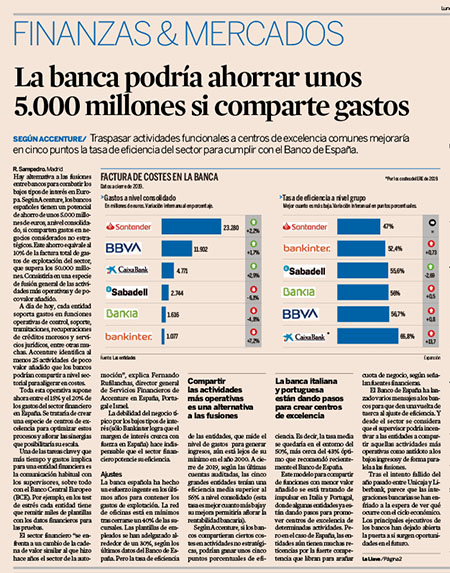 La banca podría ahorrar unos 5.000 millones si comparte gastos