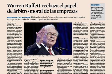 Warren Buffett rechaza el papel de árbitro moral de las empresas