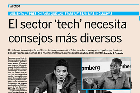 Los consejos de las últimas tecnológicas en salir a Bolsa muestra unos órganos copados por hombres blancos y donde la presencia de la mujer es minoritaria, apenas ocupan un 25% de los asientos. Puedes ver la nota en este enlace.