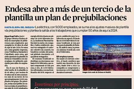 El grupo eléctrico Endesa ultima un macroplan de jubilaciones para empleados que cumplan los 50 años de edad de aquí al año 2024. Se suma así a otras grandes empresas, como Telefónica, Santander y CaixaBank, entre otras, que están ajustando…