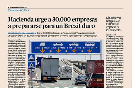 Crecen los temores ante la posibilidad de un Brexit sin acuerdo, ante esto la CNMV envía 30.000 cartas ante su “preocupación” por el impacto en la empresa española. Puedes ver la nota en este enlace.