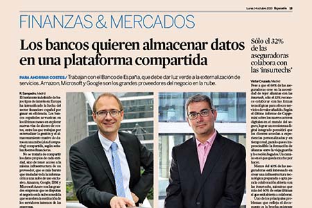 Los bancos españoles se vuelcan en los últimos meses en explorar nuevas vías de ahorro de costes, entre las que trabajan por externalizar la gestión y el almacenamiento masivo de datos en una nube (cloud computing) compartida, según señalan fuentes…