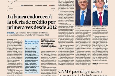 La demanda de hipotecas y préstamos a empresas se redujo en el último trimestre de 2018. Es la primera vez desde 2012 que las entidades anticipan que exigirán criterios más estrictos para dar créditos, según la última encuesta sobre préstamos…