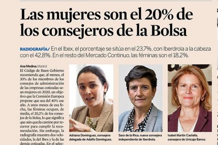 El Código de Buen Gobierno recomienda que, al menos, el 30% de los miembros de los consejos de administración de las empresas cotizadas sean mujeres en 2020, un objetivo que la Comisión Europea propone que sea del 40% ese año.