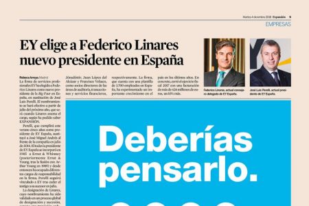 EY ha elegido a Federico Linares como nuevo presidente en España, en sustitución de José Luis Perelli.