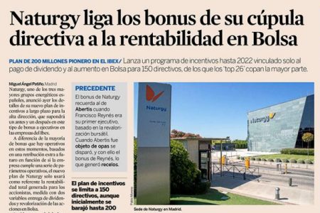 Lanza un programa de incentivos hasta 2022 vinculado solo al pago de dividendo y al aumento en Bolsa para 150 directivos.