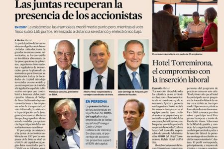 El porcentaje de asistencia a las juntas de accionistas celebradas en 2017 por las empresas de la Bolsa se situó en el 69,3% del capital social, según datos recopilados por la CNMV en su informe anual de gobierno corporativo.