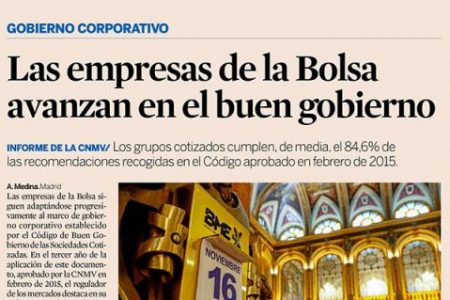 Los grupos cotizados cumplen, de media, el 84,6% de las recomendaciones recogidas en el Código aprobado en febrero de 2015.