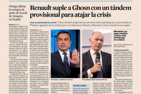 Thierry Bolloré dirigirá temporalmente el día a día del grupo automovilístico y Philippe Lagayette será el interlocutor en la alianza con Nissan y Mitsubishi. Ghosn mantiene sus cargos.