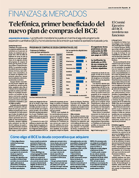 Telefónica, primer beneficiado del nuevo plan de compras del BCE